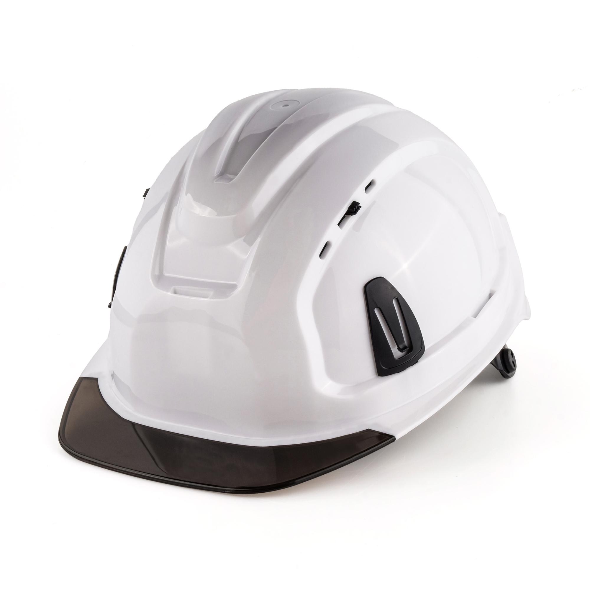 Корпус выполнен из материала Termotrek, имеет козырек из прозрачного материала. Внутренняя оснастка ЭТАЛОН с тканными амортизационными лентами, несущая/ затылочная лента с плавной регулировкой RAPID. Пазы в корпусе каски для совместного ношения с защитными лицевыми щитками с креплением на каске и наушниками противошумными с креплением на каске. В комплект касок Абсолют входит адаптер с держателем для очков открытого типа, кронштейны для крепления щитков КБТ ВИЗИОН, текстильный подбородочный ремень с креплением к корпусу каски в 4-х точках и обтюратор.